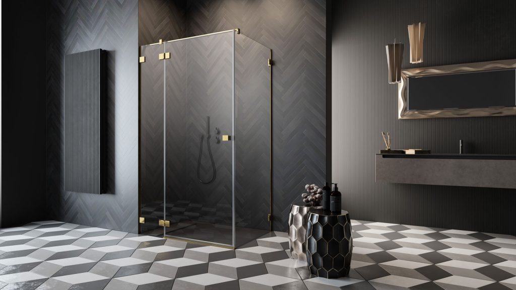 – коллекция кабин разных форм, дверей и шторок, в которых стационарное стекло закреплено к стене с помощью кронштейна, а не профиля. Допустимы два варианта монтажа: с уплотнительным профилем, или без него. Створка двери подвешена на латунных петлях и открывается только наружу.