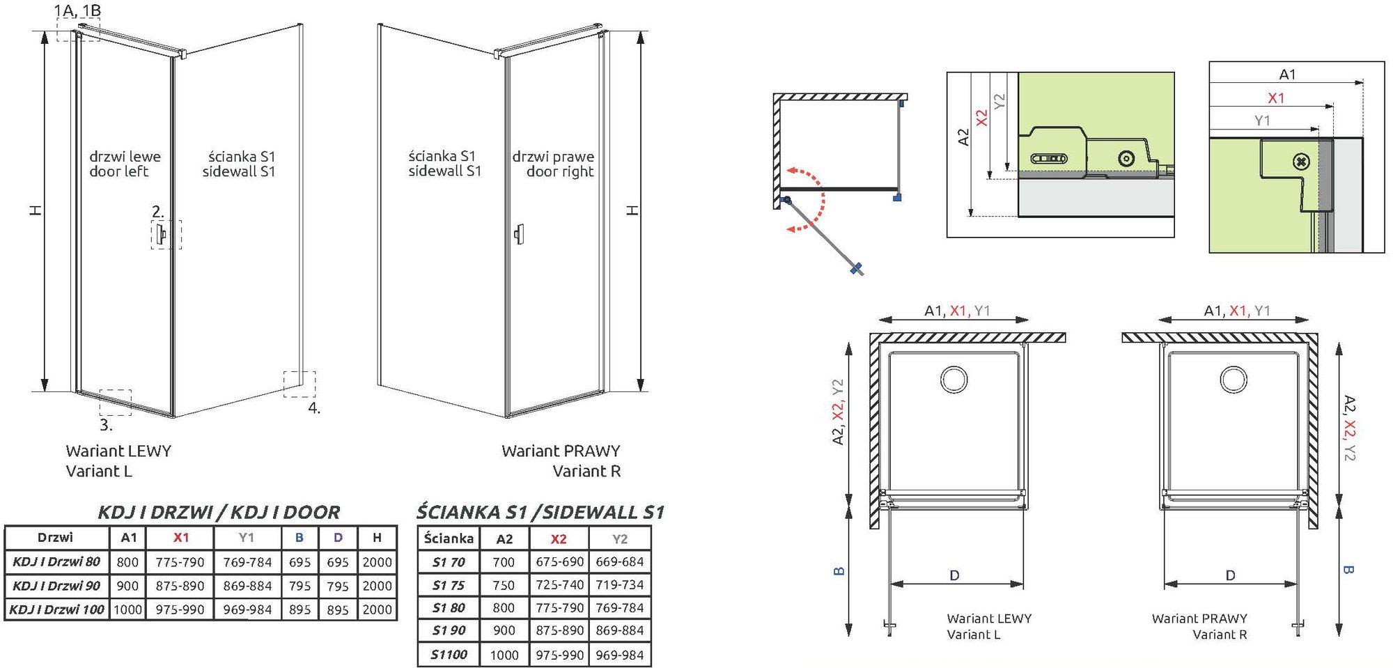 KDJ I door 90 L / KDJ I door 90 R - это дверь + S1 100 - боковая стенка