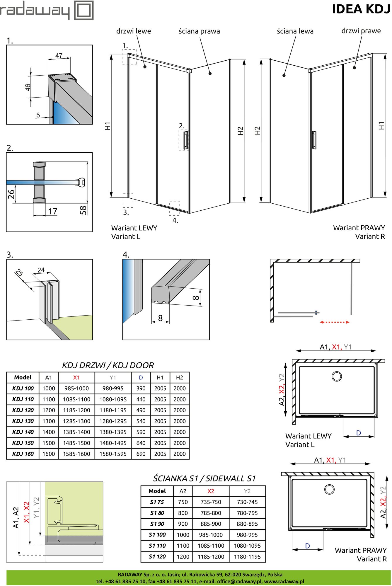 душевой уголок radaway idea kdd 100x90 прозрачное/хром