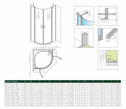 Тип кабины - Полукруглая кабина для пристенного монтажа
