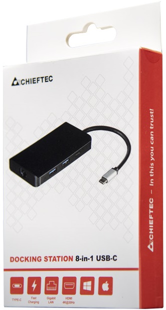 Док-станция 8-в-1. Интерфейсы: 2 x USB 3.2 Gen1 Type A, 2 x USB Type-C, HDMI 2.0, LAN Ethernet. Слоты для SD/TF-карт. Скорость передачи до 5 Гбит/сек.
