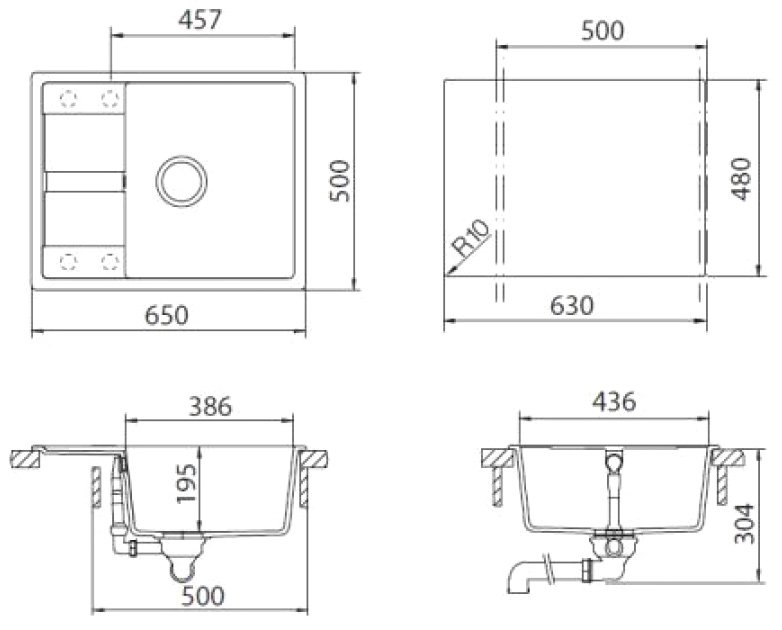 Способ установки врезная; форма прямоугольная; материал искусст. гранит; количество чаш 1; ширина 65 см; длина (диаметр) 50 см; глубина основной чаши 19.5 см.