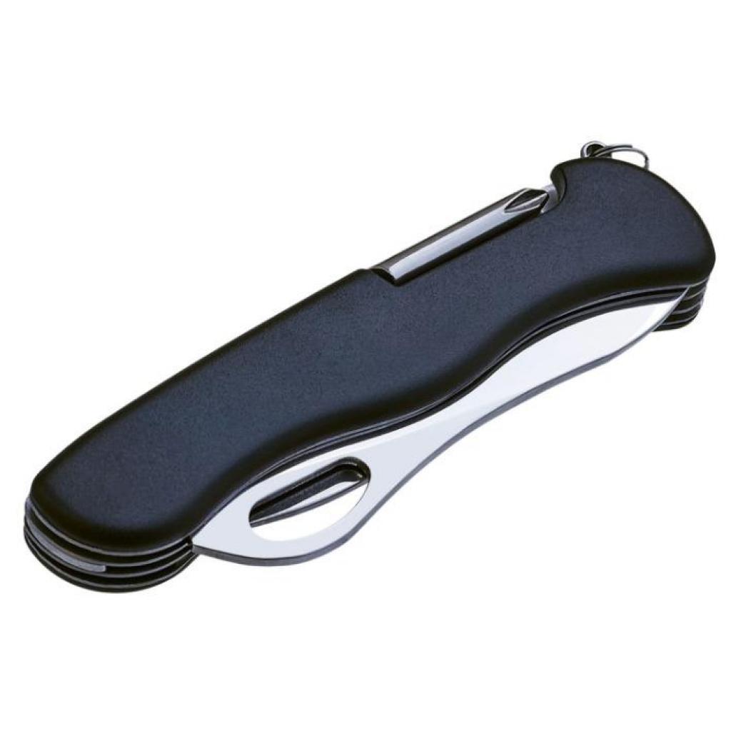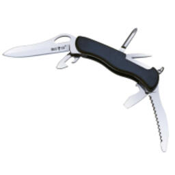 - Багатоцільовий клинок з серрейторною кромкою. Працює як стропоріз (саме тому його кінчик закруглений), пила і в якості доповнення до основного клинку.