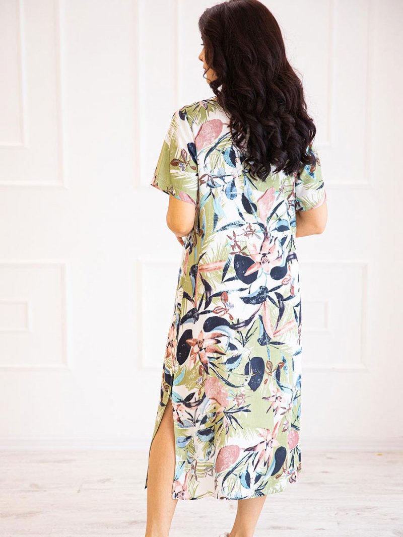 Платье женское свободного кроя от производителя ГАНГ (Индия). Выполнено из вискозы. Длина 120 см.