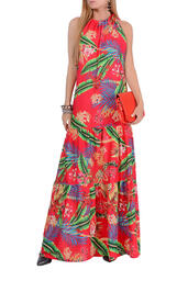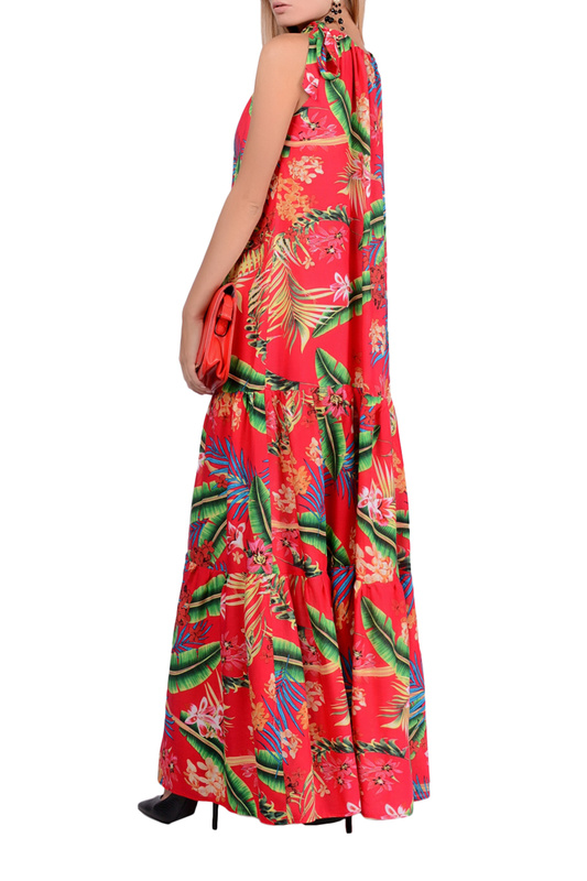 Яркое длинное платье-сарафан из мягкой хлопковой ткани. Модель на бретелях открывает плечи и зону декольте, подчеркивая красоту шеи и плеч. С помощью завязок можно регулировать длину платья и глубину выреза на груди и спине. Этот яркий наряд с натура