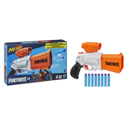 Погрузись в атмосферу Fortnite и перенеси любимую игру из виртуального мира в реальность с бластером Нёрф Фортнайт SR! Вместе с этим мощным оружием тебе больше не нужно перезаряжать бластер после каждого выстрела: эта модель позволяет выстрелить 4 стрелами подряд. Хорошенько прицелься, оттяни рукоятку затвора назад и нажми на курок. А чтобы гарантировано попасть прямо в цель, прикрепи к бластеру прицел, который можно затем снять при необходимости.