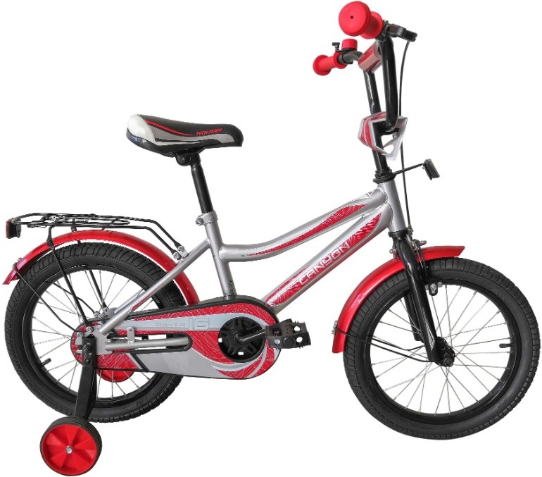 Детский велосипед. Стальная рама. Надувные колеса 14 . Поддерживающие колеса. Ручной передний тормоз. Задний ножной тормоз. Регулируемая высота руля. Защита цепи. Звонок. Багажник.