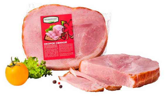 Фирменный копчено-вареный окорок с ароматом копчения на буковой щепе, который просто тает во рту.
