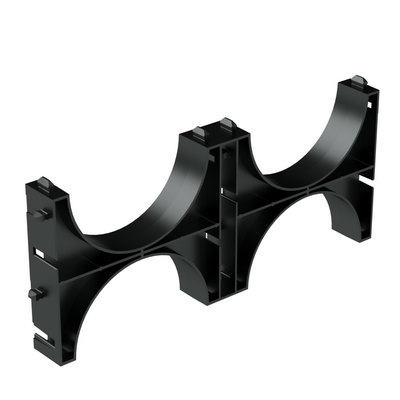 Назначение держателей: закрепление труб, препятствие смещению при засыпке, сохранение расстояния между двустенными трубами одного диаметра.