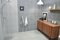 - Влагостойкость Степень устойчивости к влаге определяет, прежде всего, область применения плитки. Например, кафель, который предназначен для облицовки стен и полов ванной комнаты, бассейнов, кухонь, впитывает не более 10% влаги. Для отделки поверхностей снаружи здания используется максимально влагостойкая плитка, которая поглощает меньше 3% влаги. Влагостойкость да