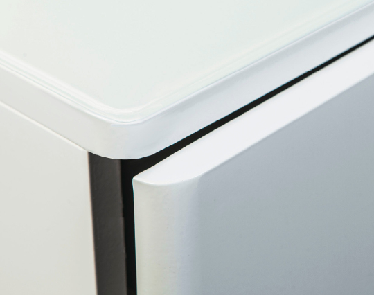 Стекло. Стеклянный корпус может быть изготовлен из прозрачного или матового стекла. Это наиболее водостойкий материал, так как ни пар, ни большое количество воды не могут его повредить. Мебель из стекла очень гигиенична, за ней легко ухаживать и поддерживать в чистоте. Недостаток: сильный удар может ее повредить.