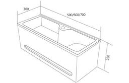 - Высота, см Высота изделия в сантиметрах. Если тумба предусматривает в комплекте наличие ножек, то высота изделия определяется вместе с ними. Этот габарит указан для изделия в минимальной комплектации (без раковины или с раковиной), если иного не указано в дополнительной информации. Высота, см 23