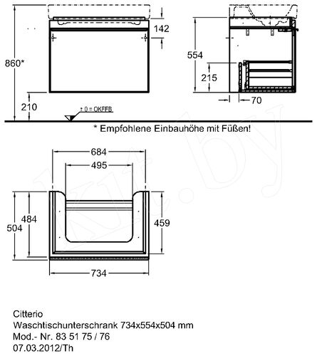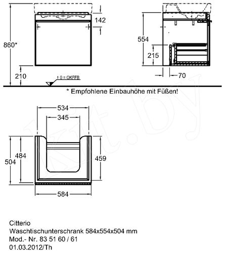 Высота, см Высота изделия в сантиметрах. Если тумба предусматривает в комплекте наличие ножек, то высота изделия определяется вместе с ними. Этот габарит указан для изделия в минимальной комплектации (без раковины или с раковиной), если иного не указано в дополнительной информации. Высота, см55.4