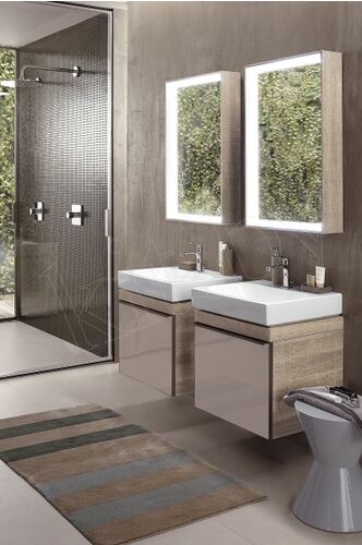 Подвесные тумбы монтируются к стене на необходимом расстоянии от пола. Позволяют сэкономить пространство в нижней части помещения, а отсутствие контакта с водой гарантирует их долгую службу.
