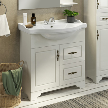 • тумба с раковиной: предполагает использование данного типа мебели вместе с керамической чашей. Большинство тумб, представленных на нашем сайте, имеет два варианта комплектации на выбор – с раковиной или без нее. Однако некоторые модели реализуются исключительно с раковиной;