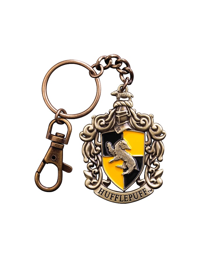 Брелок в виде герба Пуффендуя выполнен из литого металла, отдельные элементы раскрашены вручную.