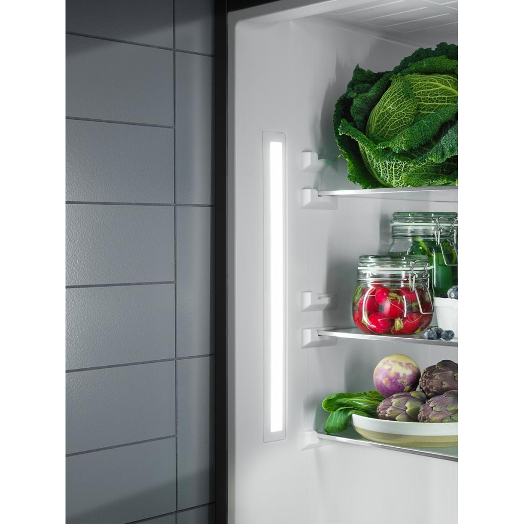Відмінна видимість завдяки вбудованому світлодіодному освітленню. Приховані енергоефективні лампи яскраво освітлюють увесь простір холодильника та споживають у десять разів менше енергії, ніж стандартне освітлення.
