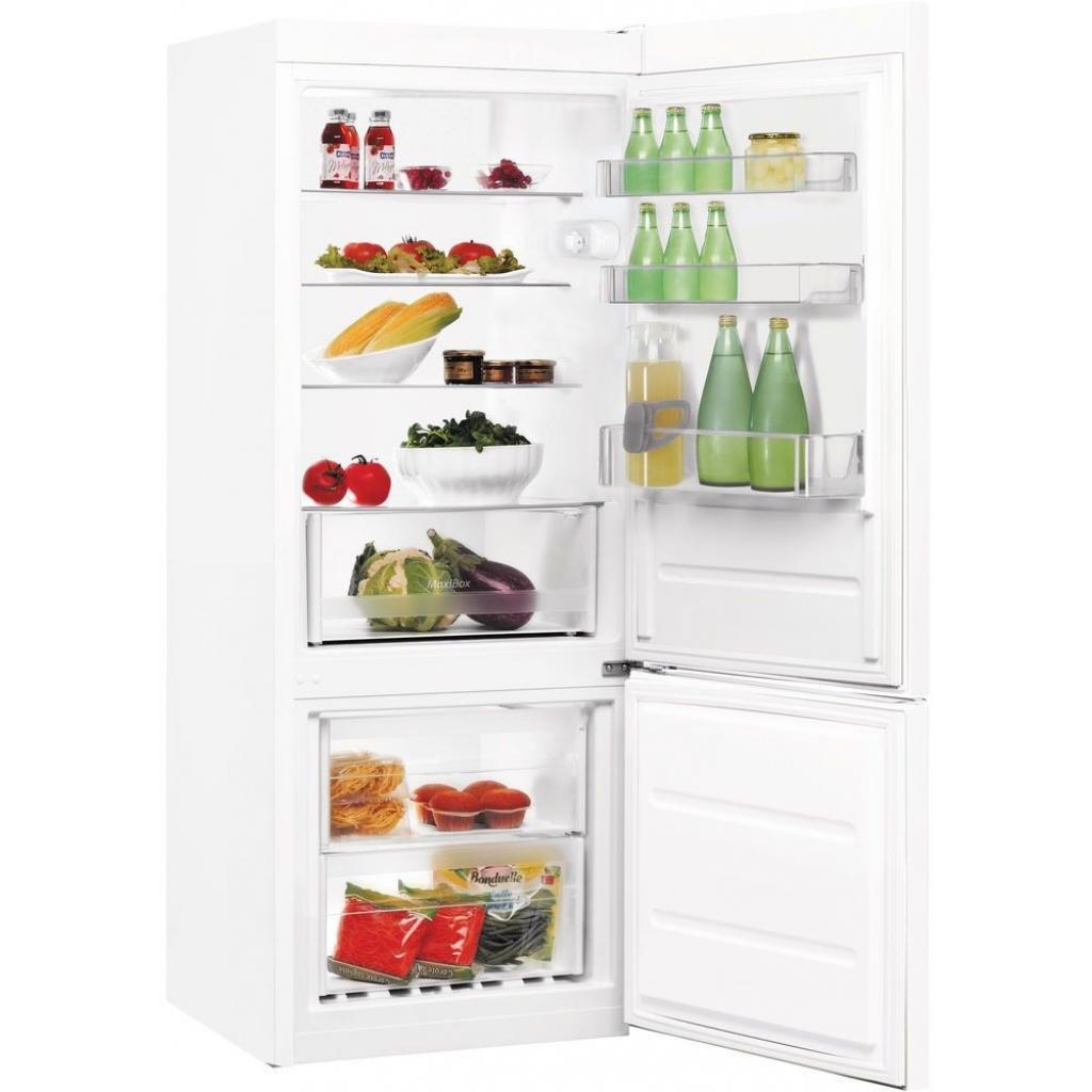Холодильник Indesit LR6 S1 W представлений в класичному форматі 2-камерного пристрою, в якому в нижній частині розташована морозилка, а у верхній - холодильне відділення. Загальний обсяг склав 272 л. Техніка зроблена в самому нейтральному мінімалістичному оформленні, яке ви тільки бачили: білий колір, інтегровані непомітні руків'я, акуратне лого вгорі. Блок управління технікою захований всередині, тому нічого не зіпсує фасад, а ви зможете легко вписати модель в будь-яку кухню.