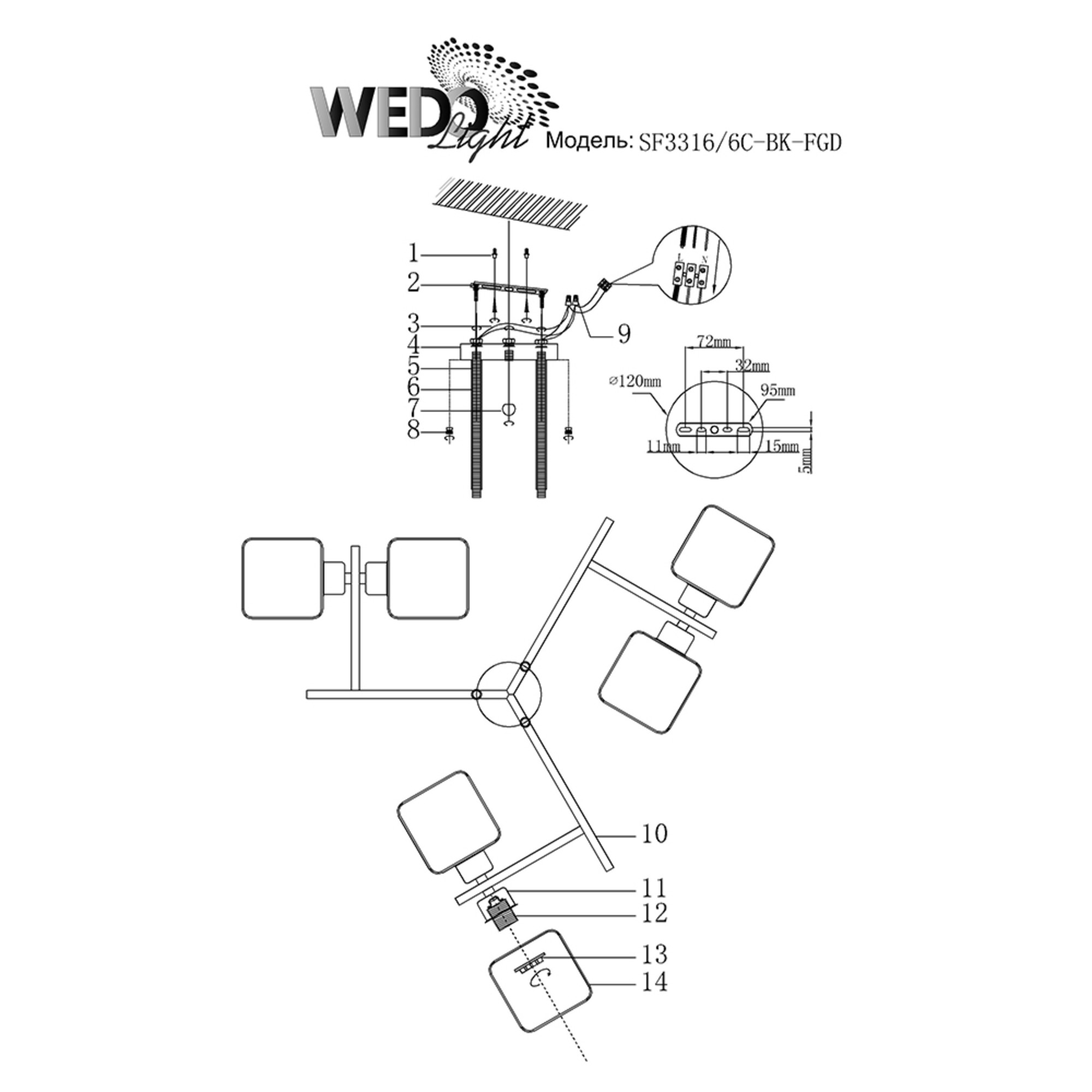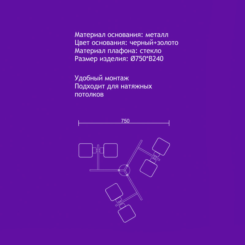 Люстра потолочная Класо 6 ламп, 18 м², цвет чёрный/золото