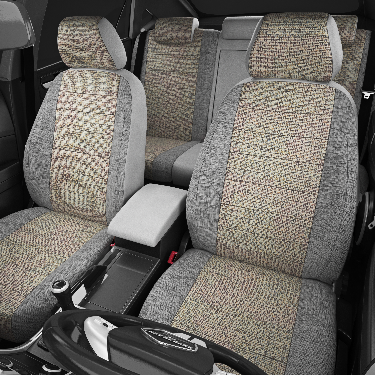 Авточехлы для Opel Meriva A с 2002-2011г. компактвэн 5 мест. Второй ряд 3 кресла-трансформера, передний подлокотник, задний подлокотник (молния), 5 подголовников LEN-01. Середина: лён Шато-блеск. Боковины: серый лён. Спинка: пластик экокожа
