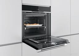 Электрический духовой шкаф, объем 70 л, класс энергопотребления A+, способ очистки ручной, переключатели сенсорные, гриль электрический, удаленное управление (Wi-Fi), телескопические направляющие, подсветка камеры, проволочные направляющие, дверца духовки откидная, дисплей, таймер с отключением, звуковой.