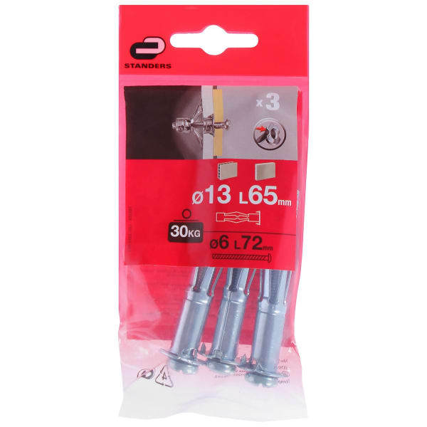 Дюбель молли Standers 13x65 мм, с винтом, 3 шт.