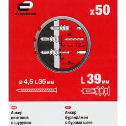 Анкер нейлоновый винтовой с шурупом 50 шт.