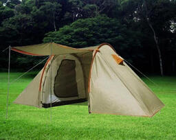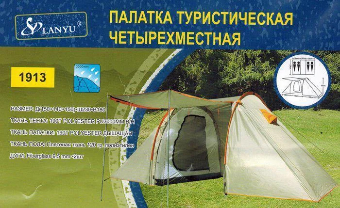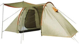 Палатка кемпинговая, количество мест 4, количество входов 1, форма палатки полусфера, количество дуг 2, материал каркаса стеклопластик, водостойкость тента 3000 мм вод, ст, защита от насекомых, высота 180 см.