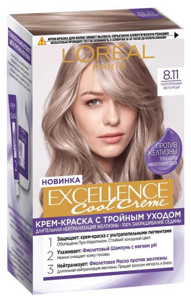 Крем-краска для волос L’Oréal Paris Excellence Cool Crème Ультрапепельный светло-русый тон 8.11, 192 мл