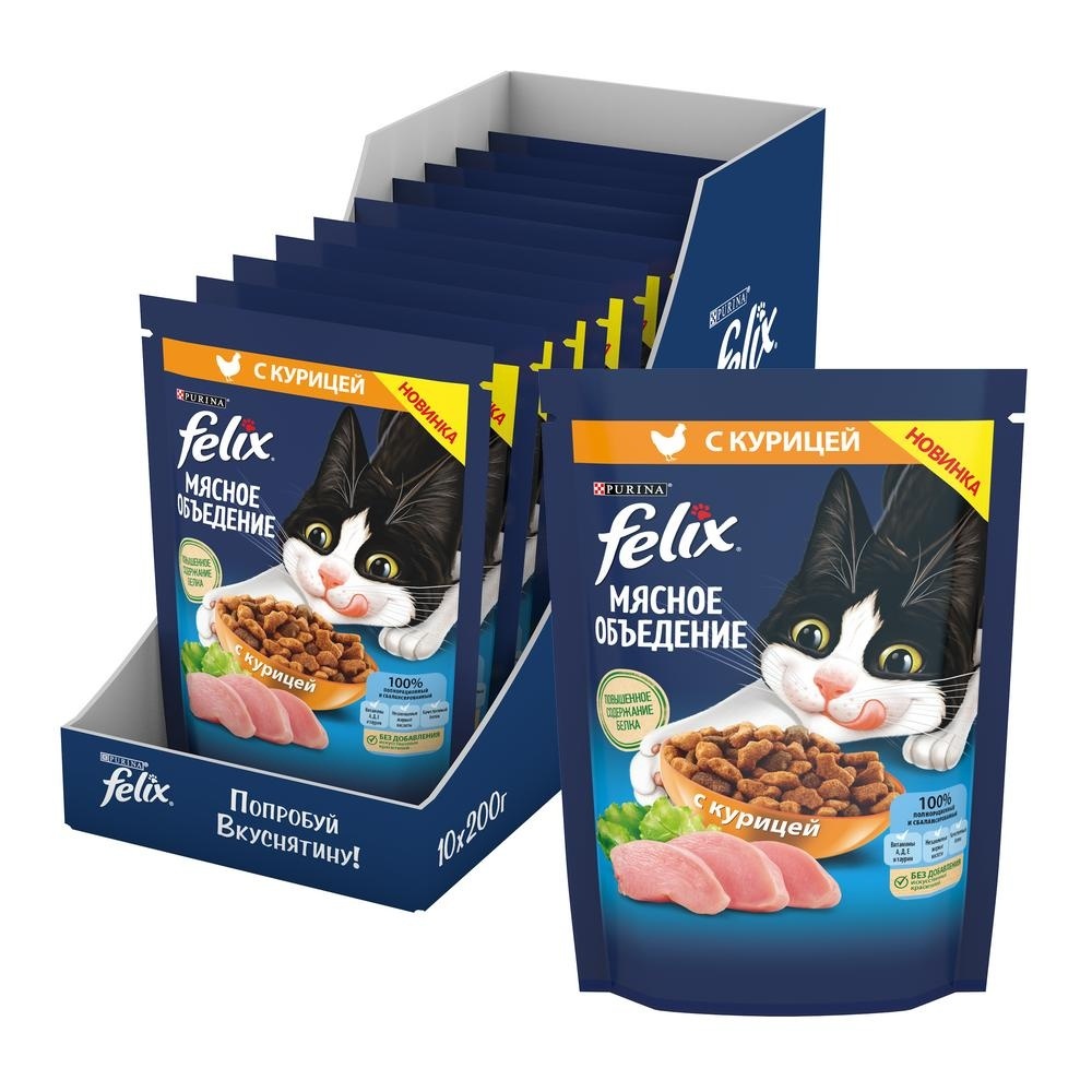 Корм Felix "Мясное объедение" с курицей для кошек – купить в интернет зоомагазине Petshop.ru: цены, отзывы, характеристики. Быстрая доставка в Санкт-Петербурге, Москве и по России.