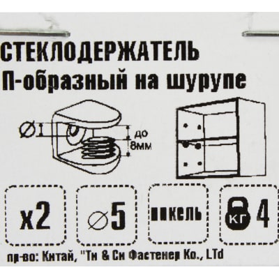 Стеклодержатель мебельный П-образный на шурупе, металл, цвет хром, 2 шт.