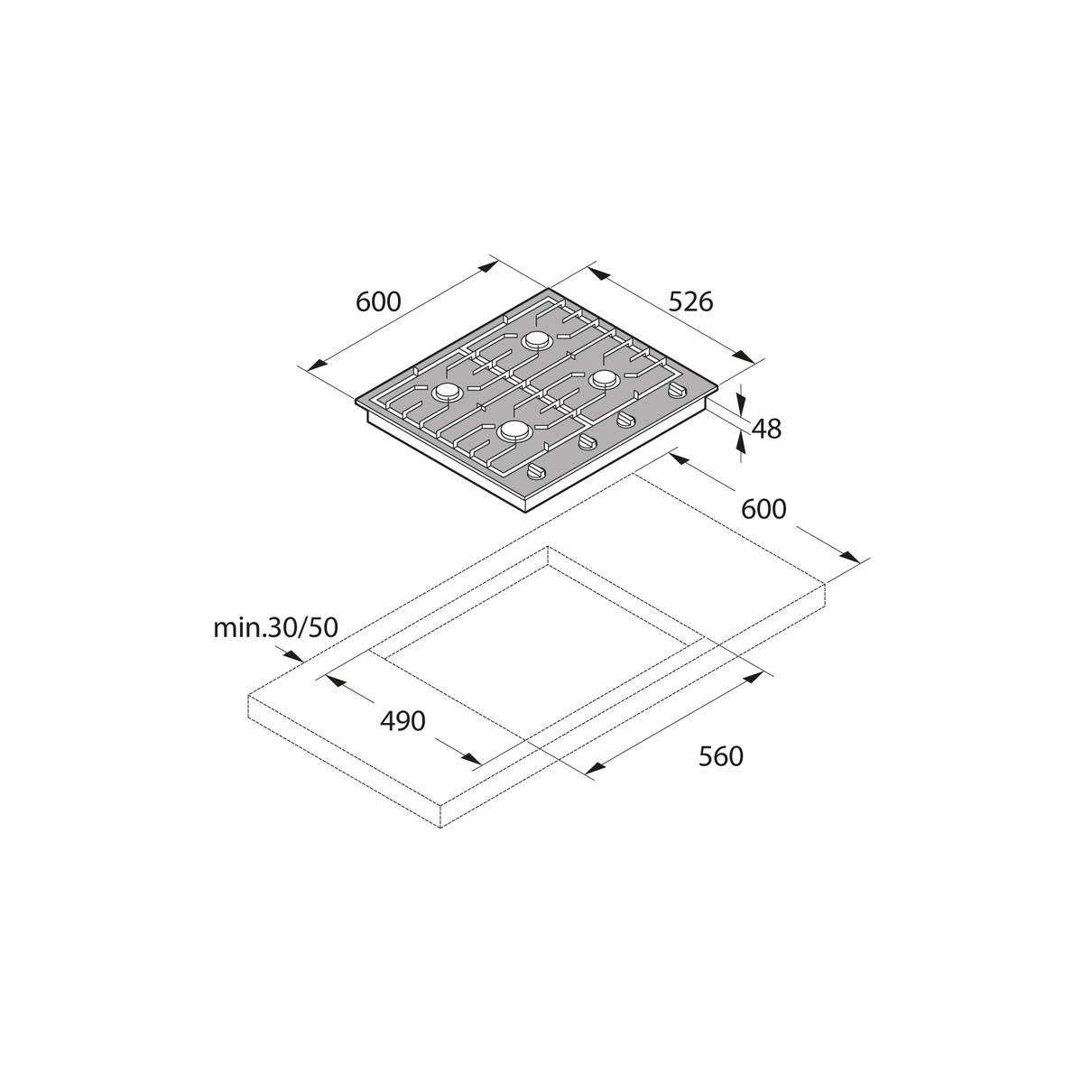 - Размеры ниши для встраивания (Ш х Г, см) 56 х 49