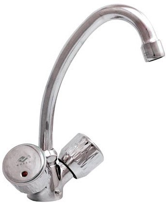 Смеситель для умывальника, двухвентильный, запорный механизм: кран-букса, излив: поворотный, монтаж на поверхность сантехники, кол-во монтажных отверстий 1, материал корпуса: латунь.