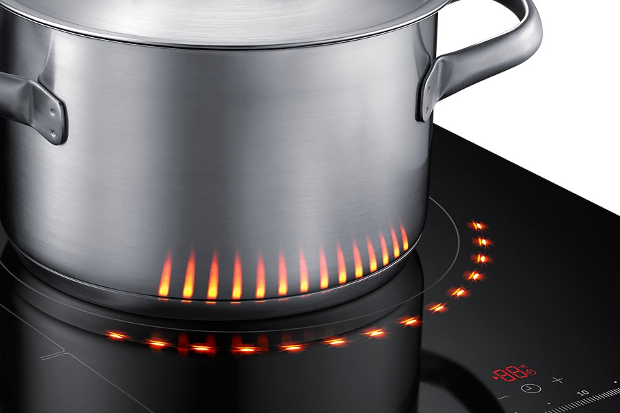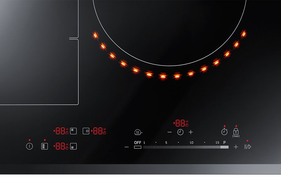 Дополнительноскошенный передний край; режим "Подогрев"; светодиодная индикация включения правой конфорки
