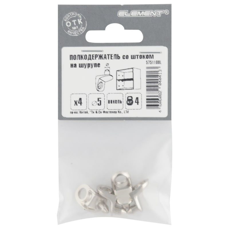 Полкодержатель мебельный со штоком на шурупе, металл, цвет хром, 4 шт.