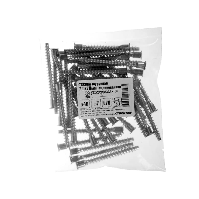 Стяжка мебельная шурупная PZ 7х70 мм, цвет хром, 40 шт.