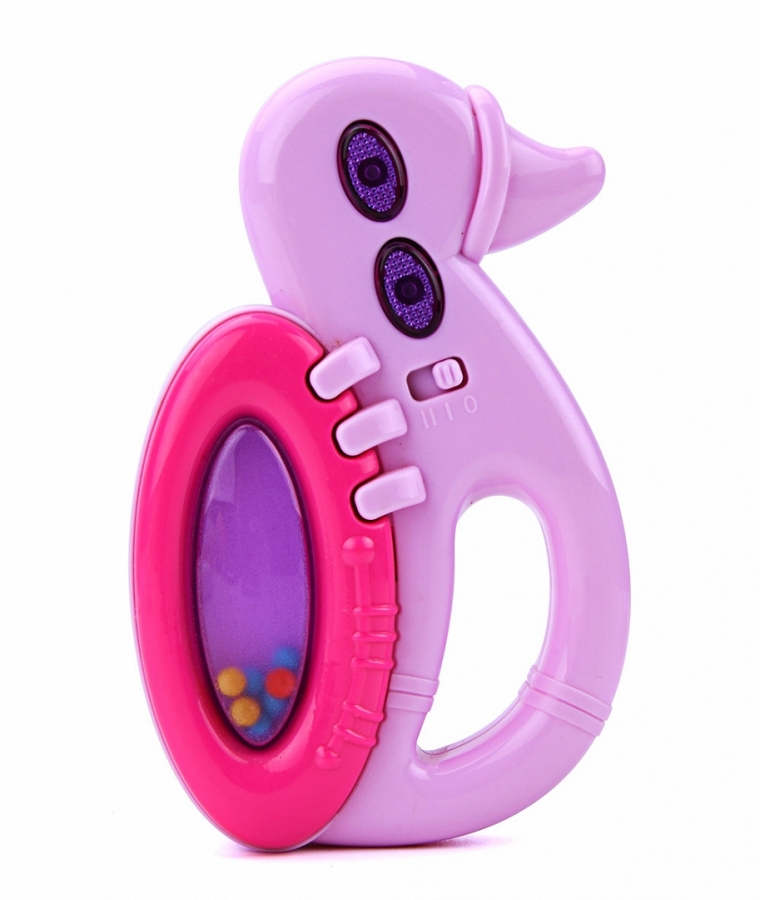 Погремушка представлена в виде УТОЧКИ.Включает в себя 2 клавиши с различными звуками (всего 7 мелодий) и светом.Внутри погремушки – шарики.Для работы требуются батарейки: 2 х АА (входят в комплект).Изготовлена из пластмассы.Звуковое и световое сопровождение.Предназначено для детей 12м+.Размер игрушки: 13*9*3 см