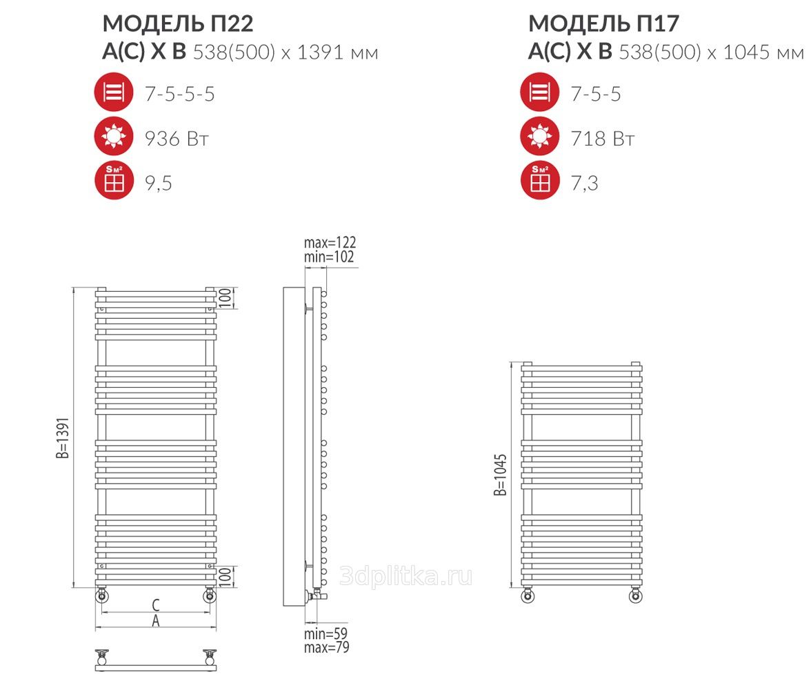В зависимости от Ваших потребностей, можно выбрать разновидность данного полотенцесушителя с разным количеством перекладин: