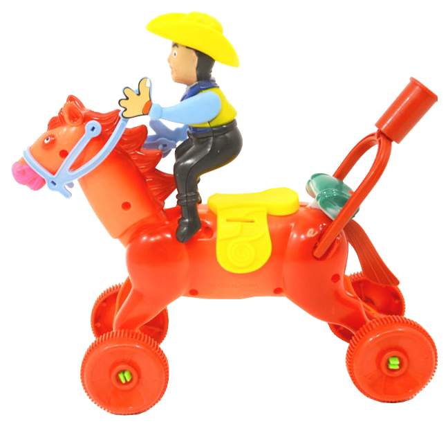 Каталка детская Рыжий кот Ковбой на лошади И-1983 - замечательный подарок для детей от 1 года. Ребенку обязательно понравится играть с необычной яркой игрушкой с музыкальным и световым эффектом, благодаря удобной ручке малыш сможет самостоятельно гулять с каталкой, толкая ее перед собой.