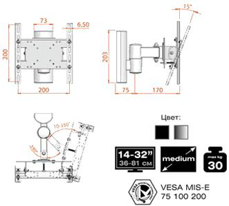 - Поддерживаемый стандарт VESA 100×100, 200×200, 75×75