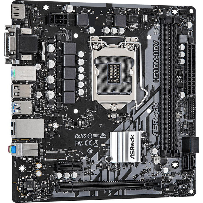 Материнская плата ASRock - H510M-HVS, mATX, Intel H510, 1xLGA 1200, 2xDDR4 до 64ГБ, 1x1GbE, audio, VGA, HDMI, 2xPS/2, 4xSATA, 4xUSB2.0, 2xUSB3.2, H510M-HVS