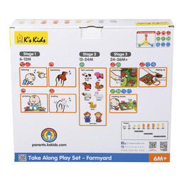Набір Ферма включає килимок, що складається в сумочку, 7 сільськогосподарських тварин і 2 фермери. Рольові ігри сприяють розвитку соціальних навичок. Рекомендований вік: від 6 місяців. Матеріал: текстиль. Розмір: вівця 4 х 7 х 9 см. Килимок: 37 х 50 см. Упаковка: коробка 31 x 28 x 8 см. Органи чуття Для того, щоб пізнавати світ, дитині необхідно активізувати основні органи чуття: зір, слух, дотик, нюх і смак. Дрібна моторика Навички дрібної моторики розвиваються шляхом розробки пальчиків рук дитини для управління дрібними предметами. Координація рухів Навички загальної моторики - це вміння рухатися за участю рук, ніг або мускулатури ступнів, або всього тіла. Логічне мислення Розвиток логічного мислення допомагає дитині вибудовувати зв'язки між частинами інформації. Уява Здатність співвідносити кольори, різноманітні форми, малювати лінії, сприймати музику та ритм, розуміти пропорцію і перспективу. Мова Здатність використовувати звуки та мову для самовираження і розуміння інших людей у міру того, як дитина росте. Емоційність Будь-яка здорова дитина повинна вміти висловлювати та контролювати свої емоції, а також ефективно взаємодіяти з іншими людьми на основі спільної довіри. Комунікабельність Хороші комунікативні навички налаштують дитину на вирішення спільних завдань і допоможуть стати повноцінним членом колективу. Самооцінка Це почуття, яке дитина відчуває при досягненні чогось значимого для неї і схвалення з боку інших людей. Виконання нею поставлених завдань сприяє розвитку самооцінки досягнень. Дія 1.1 Мета: тренування слухання і уваги - спостереження за реакцією вашої дитини на звуки. Метод: Стискуйте тварин, щоб видавати звуки з різних сторін. Зверніть увагу, чи слідує погляд вашої дитини за звуком. Дія 1.2 Мета: Тренування дрібної моторики - хапання. Метод: Попросіть дитину взяти тварин правою і лівою ручками. Дія 1.3 Мета: тренування загальної і дрібної моторики - стиснення і струшування. Метод: Попросіть дитину стискати й трясти тварин, щоб вони видавали гуркіт і писк. Дія 2.1 Мета: Когнітивний тренінг - вивчення назв тварин і персонажів. Метод: Навчайте дітей назвам різних тварин і персонажів. Дія 2.2 Мета: Когнітивне тренування - вказування на тварин і персонажів. Метод: Називайте різних тварин і персонажів і заохочуйте дітей вказувати на них. Дія 3.1 Мета: Когнітивне тренування - відповідність. Метод: Запропонуйте дітям поєднати тварину із зображенням на килимку. Наприклад, курка йде в курник, а качка в качиний ставок. Дія 3.2 Мета: Тренування уяви - історії. Метод: Дозвольте дітям придумувати історії, використовуючи тварин і фермера в якості головних героїв, а фермерський двір - як декорації. Дія 3.2 Мета: Навички самообслуговування - прибирання. Метод: Килимок можна скласти навпіл, щоб вийшла сумка. Це дозволяє дітям легко носити іграшки з собою. Заохочуйте дітей класти тварин назад у сумку після гри.