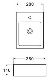 Умывальник на столешницу, ширина 380 мм, длина 280 мм, форма: прямоугольная, санитарная керамика, отверстие под смеситель.