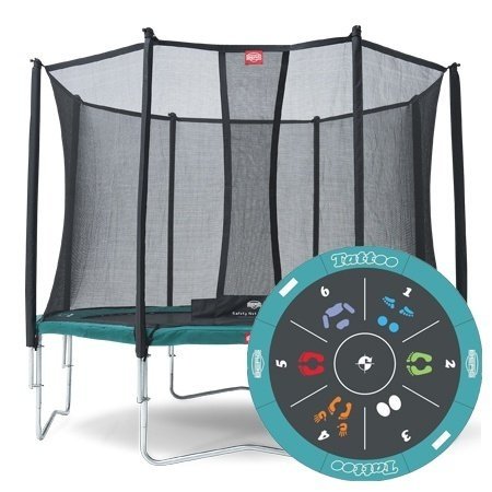 Батут Berg Favorit Tattoo 430 см (35.14.03.01) отвечает всем требованиям относительно безопасности конструкции и материалов. Для предотвращения падения в комплекте предусмотрена защитная сетка, которая изготовлена из синтетических и прочных материалов. Серия Tattoo отличается тем, что на зону для прыжков нанесен рисунок для коллективных игр. Когда батут не используется, для сохранения поверхности от загрязнения, Вы можете приобрести дополнительно чехол.