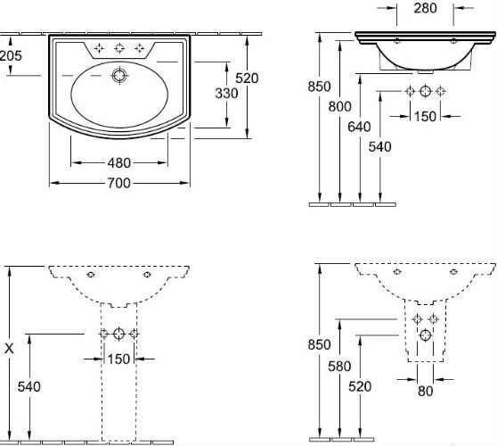 - Форма умывальника Прямоугольная