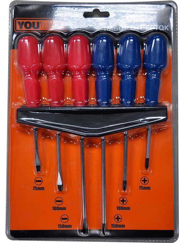 Набор HI-TEC D-D0601 состоит из 6 отвёрток - 3 с профилем SL 3,2-6 мм и 3 PH0-2. Данный комплект незаменим для выполнения работ с крепежными элементами различных размеров. Стальной стержень с хромовым напылением устойчив к износу и поломке жала. Для удобного применения ручка оснащена прорезиненными вставками. Для компактного хранения предусмотрена полка для отверток.