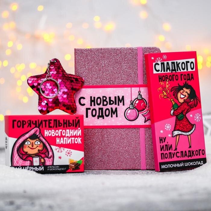 Подарочный набор "С Новым годом" шоколад 85 г, чай 50 г, блокнот, брелок