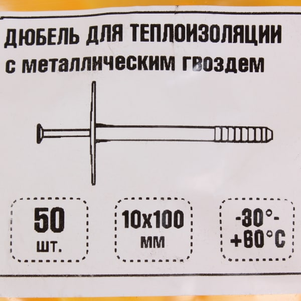 Дюбель изоляционный Standers 10x100 мм, с металлическим гвоздём, 50 шт.