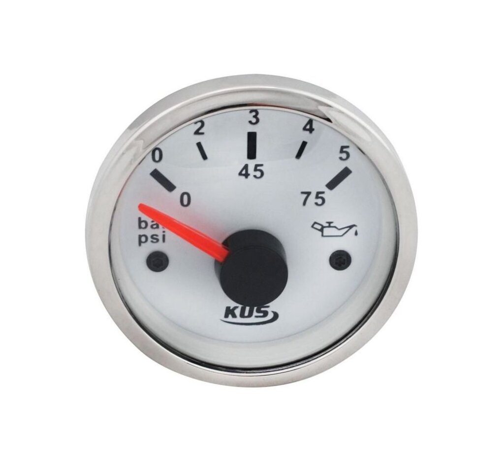 Указатель давления масла 0-5 бар, белый циферблат, нержавеющий ободок, д. 52 мм JMV00309_KY15100