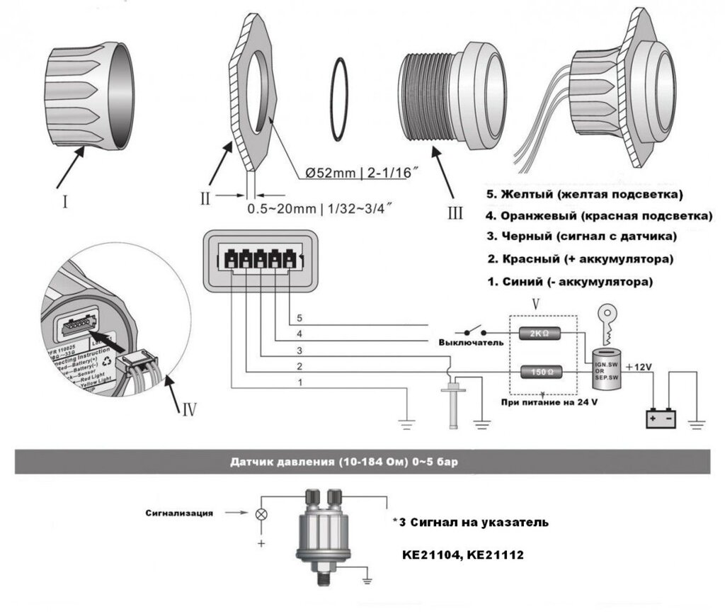 ОписаниеУказатель давления масла предназначен для контроля за давлением в масляной системе двигателя. Используется шкала измерений с пределом в 6 бар.
